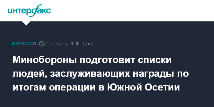 Минобороны подготовит списки людей, заслуживающих награды по итогам операции в Южной Осетии