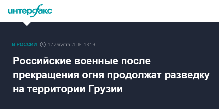 Сухуми. 12 августа. INTERFAX.RU – Решение о прекращении огня по грузинским военным объектам не означает того, что российские Вооруженные силы не будут вести другую деятельность военного характера на территории Грузии, в том числе разведывательную.