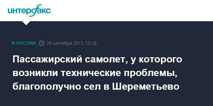 Пассажирский самолет, у которого возникли технические проблемы, благополучно сел в Шереметьево