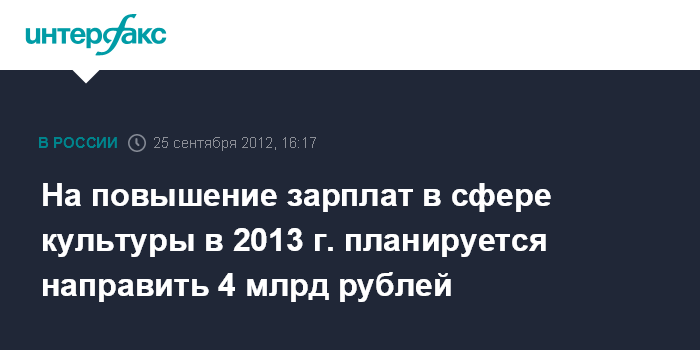 На повышение зарплат в сфере культуры в 2013 г. планируется направить 4 млрд рублей