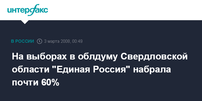 На выборах в облдуму Свердловской области "Единая Россия" набрала почти 60%