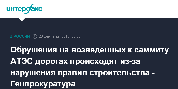Обрушения на возведенных к саммиту АТЭС дорогах происходят из-за нарушения правил строительства - Генпрокуратура