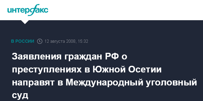 Заявления граждан РФ о преступлениях в Южной Осетии направят в Международный уголовный суд