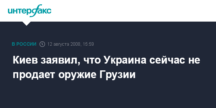 Киев. 12 августа. INTERFAX.RU - Украина не осуществляет в настоящее время поставки оружия Грузии, заявили в украинском МИД.