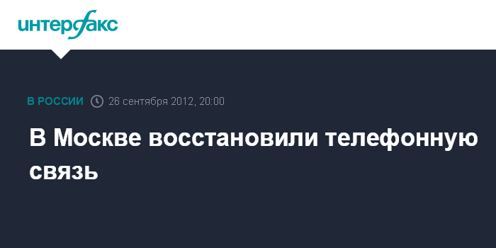 Москва. 26 сентября. INTERFAX.RU - В Москве восстановлена телефонная связь, нарушенная ранее в ряде округов из-за перебоев в сетях МГТС.