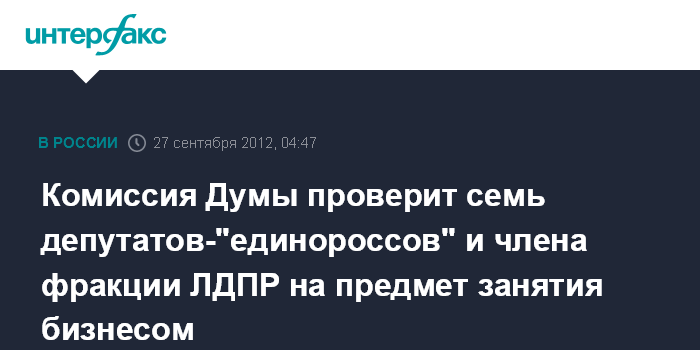 Комиссия Думы проверит семь депутатов-"единороссов" и члена фракции ЛДПР на предмет занятия бизнесом