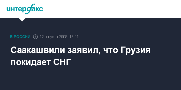 Тбилиси. 12 августа. INTERFAX.RU - Грузия покидает состав Содружества независимых государств (СНГ), заявил во вторник на митинге перед парламентом Грузии президент Михаил Саакашвили. По его словам, он дал соответствующие указания.