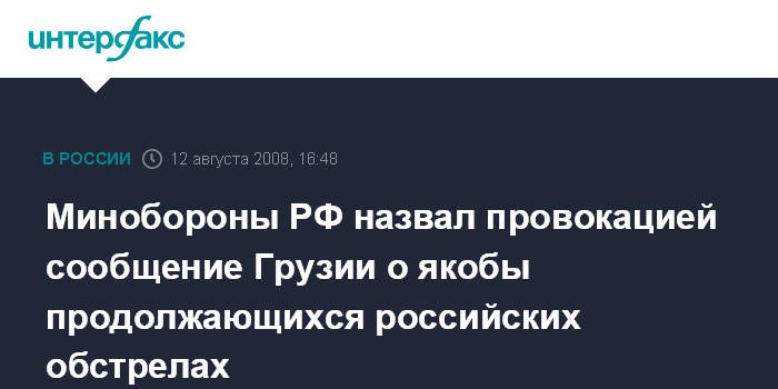 Минобороны РФ назвал провокацией сообщение Грузии о якобы продолжающихся российских обстрелах