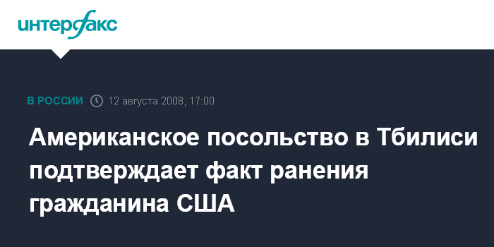 Тбилиси. 12 августа. INTERFAX.RU - Посольство США в Грузии располагает данными об одном пострадавшем американце в результате обострения грузино-осетинского конфликта. "Мы подтверждаем факт ранения американского гражданина в районе боевых действий. Однако имени его назвать не можем в соответствии с законом о защите прав на частую жизнь", - сказал "Интерфаксу" во вторник представитель американской дипмиссии в Тбилиси.