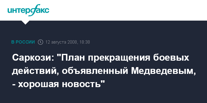 Саркози: "План прекращения боевых действий, объявленный Медведевым, - хорошая новость"