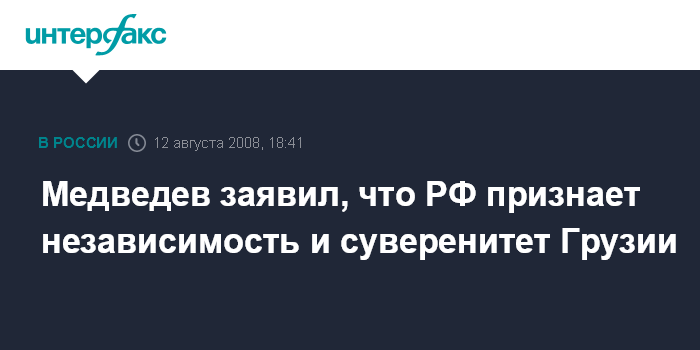 Медведев заявил, что РФ признает независимость и суверенитет Грузии