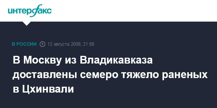 Москва. 12 августа. INTERFAX.RU - В Москву из Владикавказа самолетом МЧС доставлены 7 человек, получившие тяжелые ранения в Цхинвали.