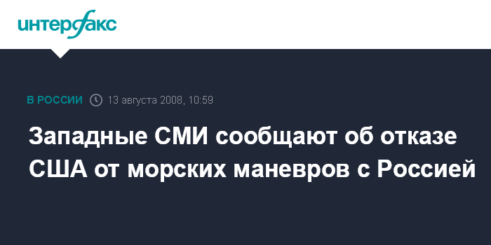 Москва. 13 августа. INTERFAX.RU - США в связи с грузино-югоосетинским конфликтом отменили свое участие в совместных с Россией военно-морских учениях на Тихом океане на будущей неделе, в которых предполагается также участие Британии и Франции, утверждают американские СМИ.