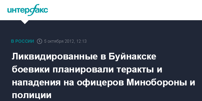 Москва. 5 октября. INTERFAX.RU - Ликвидация боевиков в Буйнакске позволила предотвратить ряд преступлений террористической направленности, которые бандиты планировали совершить в ближайшее время, сообщили "Интерфаксу" в информцентре Национального антитеррористического комитета.
