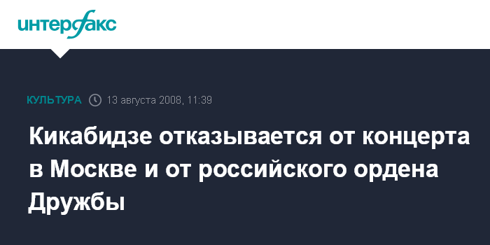 Как сообщил на митинге в Тбилиси депутат парламента Грузии Георгий Габашвили, Кикабидзе предпринял этот шаг в знак протеста против действий России в Грузии. По его словам, актер также отказался от ранее врученного ему президентом РФ Дмитрием Медведевым ордена Дружбы.