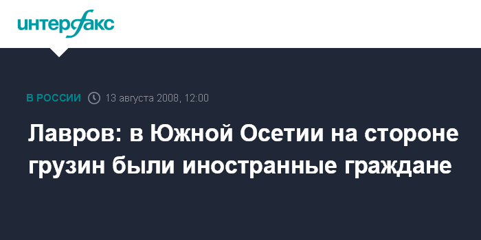 Москва. 13 августа. INTERFAX.RU - Министр иностранных дел Сергей Лавров заявил, что на стороне грузинской армии во время конфликта в Южной Осетии находились иностранные граждане.