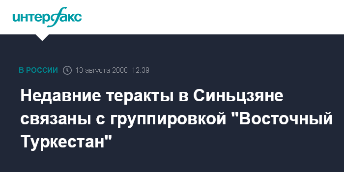 Пекин. 13 августа. INTERFAX.RU - Несколько террористических актов в Синьцзян-Уйгурском автономном районе (СУАР) Китая подготовлены и проведены экстремистской группировкой "Восточный Туркестан", заявил официальный представитель МИД КНР Цинь Ган.