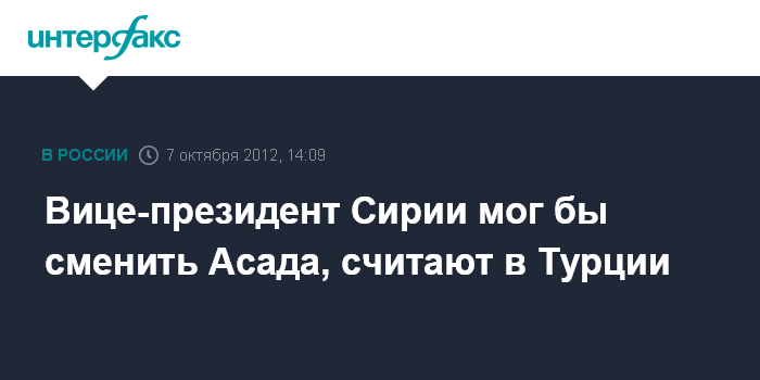 Вице-президент Сирии мог бы сменить Асада, считают в Турции