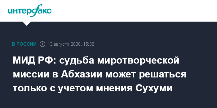 МИД РФ: судьба миротворческой миссии в Абхазии может решаться только с учетом мнения Сухуми