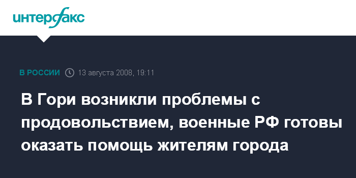 Москва. 13 августа. INTERFAX.RU - Российские военнослужащие готовы оказать помощь населению грузинского города Гори, где возникла сложная ситуация с продовольствием, заявляют в МИД РФ.