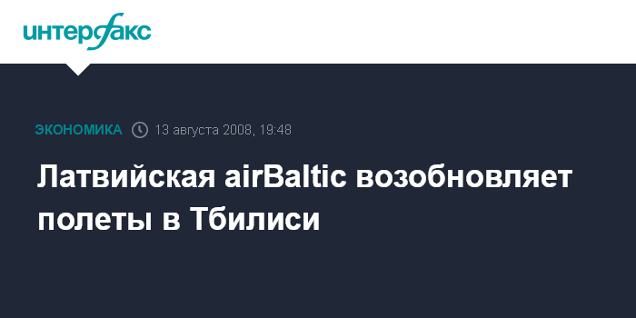 Рига. 13 августа. INTERFAX.RU - Рейс самолета латвийской национальной авиакомпании airBaltic в Тбилиси в среду вечером состоится по расписанию, сообщил агентству BNS вице-президент по корпоративным коммуникациям компании Янис Ванагс (Jаnis Vanags).