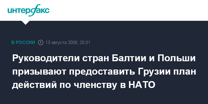 Руководители стран Балтии и Польши призывают предоставить Грузии план действий по членству в НАТО