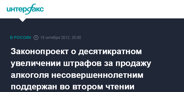 Законопроект о десятикратном увеличении штрафов за продажу алкоголя несовершеннолетним поддержан во втором чтении