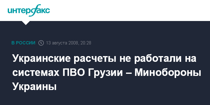 Киев. 13 августа. INTERFAX.RU - Министерство обороны Украины заявляет, что украинские военные не обслуживали комплексы противовоздушной обороны Грузии, которые сбили во время боевых действий в Южной Осетии российские самолеты.