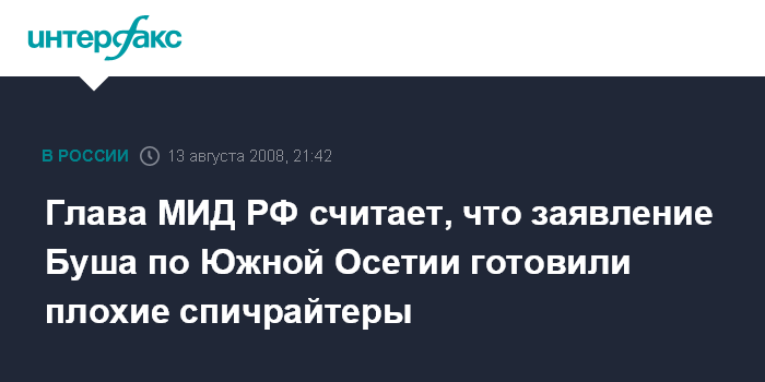Глава МИД РФ считает, что заявление Буша по Южной Осетии готовили плохие спичрайтеры