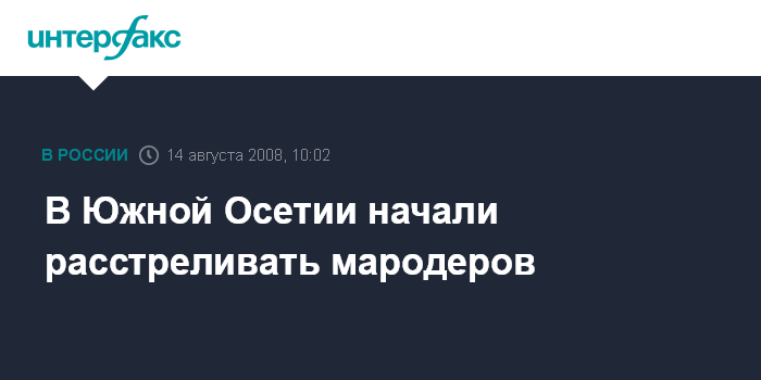 Москва. 14 августа. INTERFAX.RU - В Южной Осетии в среду расстреляны двое мародеров, сообщил "Интерфаксу" зампредседателя правительства непризнанной республики, министр по особым делам Борис Чочиев.