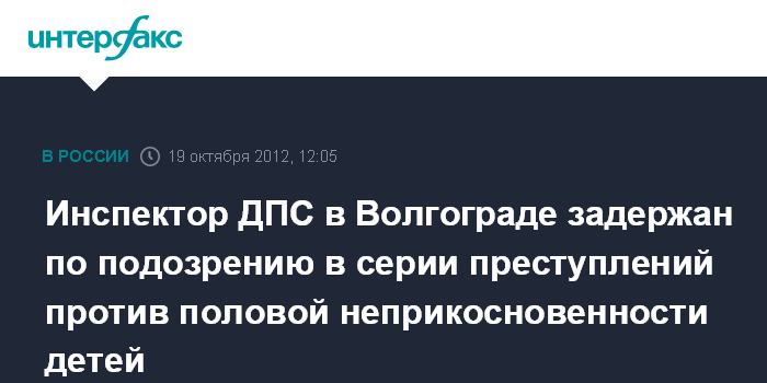 Москва. 19 октября. INTERFAX.RU - Сотрудник Волгоградской ГИБДД и двое его знакомых подозреваются в серии преступлений против половой неприкосновенности девочки-подростка, сообщили в СК РФ.