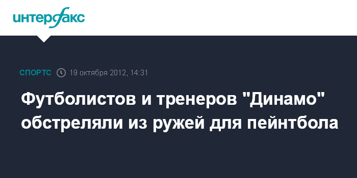 Москва. 19 октября. INTERFAX.RU – Неизвестные, проникшие на базу московского футбольного клуба "Динамо", в пятницу обстреляли игроков и тренеров команды из пейнтбольных ружей.