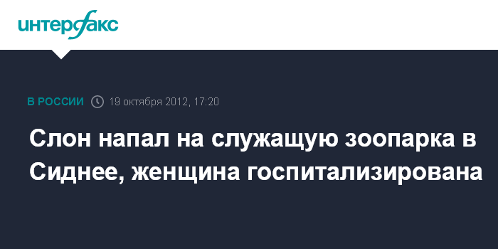 Сидней. 19 октября. INTERFAX.RU - Азиатский слон придавил работницу зоопарка "Таронда" в Сиднее, женщина в критическом состоянии была доставлена в больницу, сообщают австралийские СМИ.