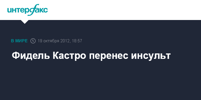 Вашингтон. 19 сентября. INTERFAX.RU - Бывший кубинский лидер Фидель Кастро перенес инсульт, сообщает в пятницу американская испаноязычная газета "Нуэво геральд" со ссылкой на венесуэльского врача Хосе Маркина.