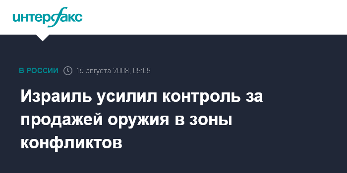 Москва. 15 августа. INTERFAX.RU - Израиль ужесточил контроль над поставками своих вооружений в конфликтные регионы, информирует посольство Израиля в РФ.