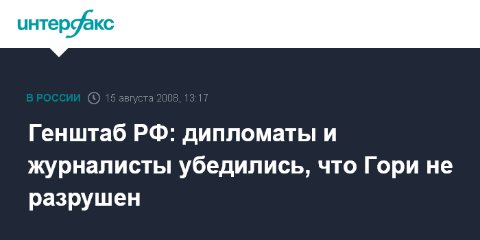 Москва. 15 августа. INTERFAX.RU - Разрушений в районе грузинского города Гори нет, заявил заместитель начальника Генштаба РФ генерал-полковник Анатолий Ноговицын в пятницу журналистам.