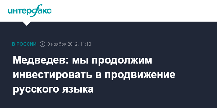 Москва. 3 ноября. INTERFAX.RU - Премьер-министр РФ Дмитрий Медведев заявил, что государство продолжит вкладывать средства в развитие русского языка в мире.