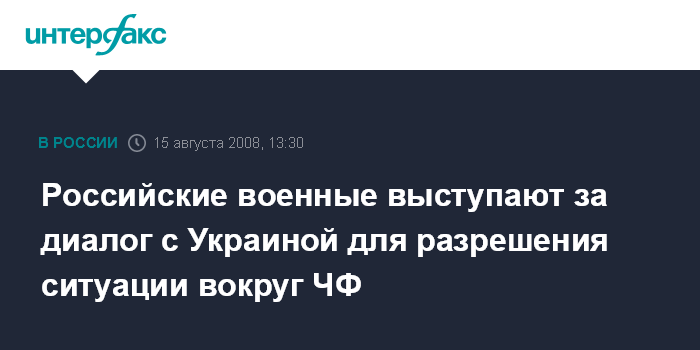 Москва. 15 августа. INTERFAX.RU - В Генеральном штабе Вооруженных сил России считают, что ситуация вокруг Черноморского флота должна быть разрешена на двусторонней основе.