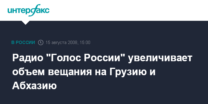 Москва. 15 августа. INTERFAX.RU - Радиостанция "Голос России" усиливает свое вещание из Москвы на территорию Грузии за счет дополнительных передатчиков и увеличения эфирного времени.