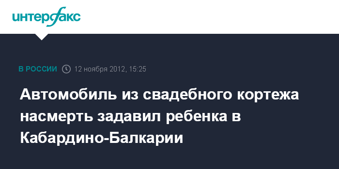 Нальчик. 12 ноября. INTERFAX.RU - В городе Нарткала (Кабардино-Балкария) расследуют обстоятельства ДТП с участием свадебного кортежа, в котором погиб десятилетний мальчик, сообщил агентству "Интерфакс-Юг" официальный представитель управления ГИБДД МВД по республике.