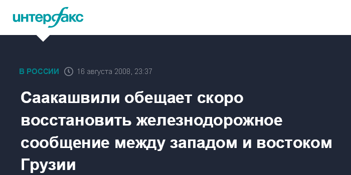 Ереван. 16 августа. ИНТЕРФАКС - Президент Грузии Михаил Саакашвили в телефонном разговоре с президентом Армении Сержем Саргсяном заверил, что приложит максимум усилий для восстановления прерванного железнодорожного сообщения между двумя странами.