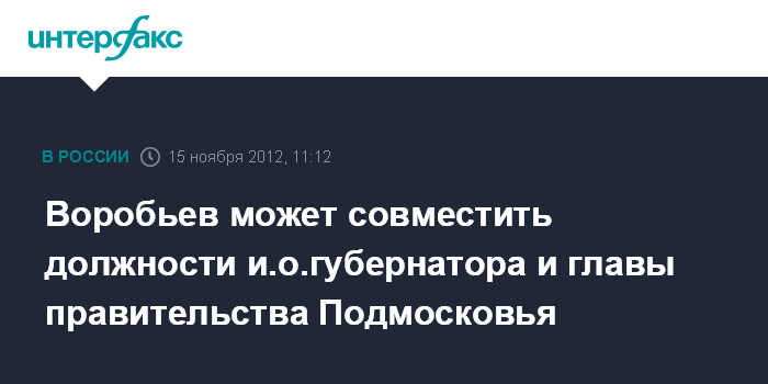 Воробьев может совместить должности и.о.губернатора и главы правительства Подмосковья