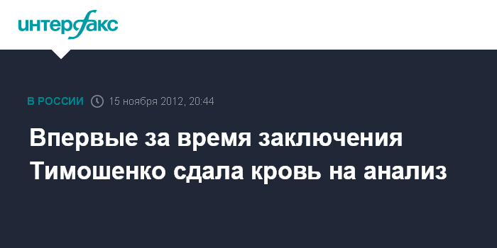 Харьков. 15 ноября. INTERFAX.RU - Экс-премьер Юлия Тимошенко в четверг сдала анализ крови, сообщил журналистам главный врач ЦКБ №5 Харькова Михаил Афанасьев.