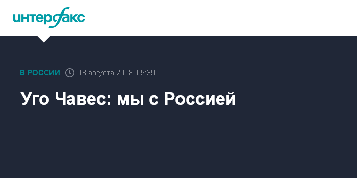 Москва. 18 августа. INTERFAX.RU - Лидер Венесуэлы Уго Чавес подтвердил свою позицию относительно России в конфликте на Кавказе, передает телеканал "Вести".