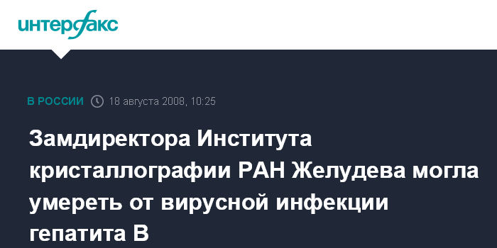 Замдиректора Института кристаллографии РАН Желудева могла умереть от вирусной инфекции гепатита В
