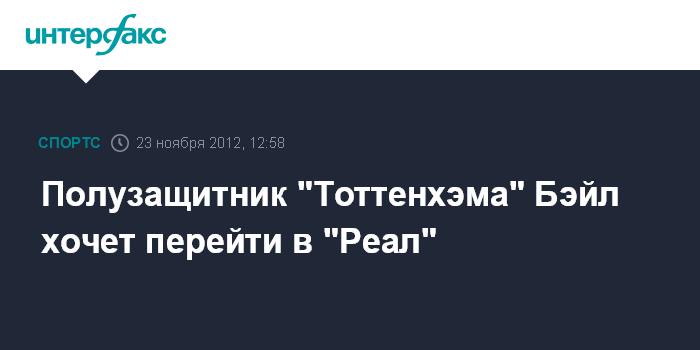 Москва. 23 ноября. INTERFAX.RU - Президент лондонского футбольного клуба "Тоттенхэм" Дэниэль Леви выразил надежду, что клубу удастся выручить 62 млн евро за трансфер полузащитника Гарета Бэйла в мадридский "Реал", в то время как сам футболист уже уведомил руководство о своем желании перебраться в Испанию.
