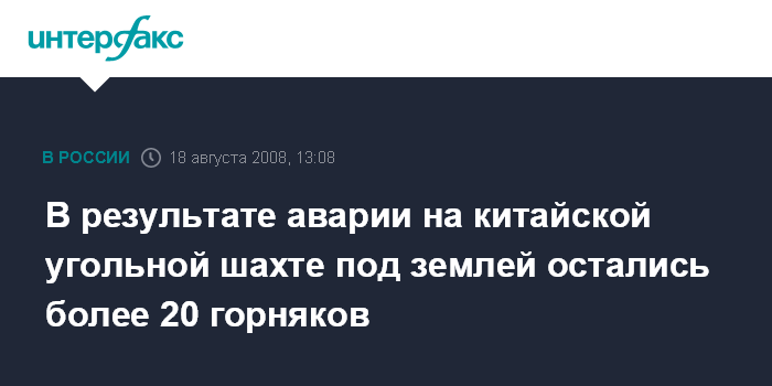 В результате аварии на китайской угольной шахте под землей остались более 20 горняков