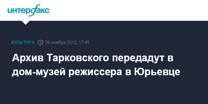 Иваново. 28 ноября. INTERFAX.RU - Архив режиссера Андрея Тарковского, выставленный на торги аукционного дома Sothbey's, будет передан в дом-музей режиссера в город Юрьевец, сообщает пресс-служба правительства региона в среду.