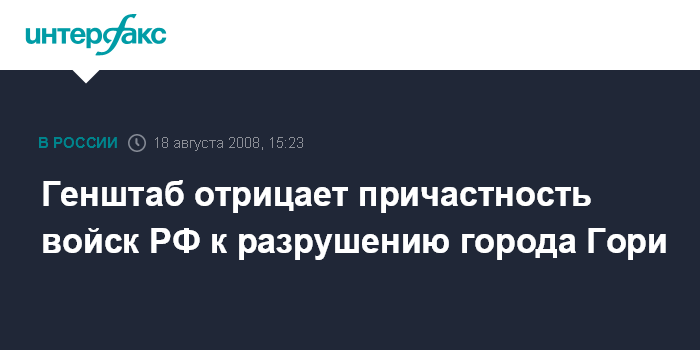 Москва. 18 августа. INTERFAX.RU - Заместитель начальника Генштаба ВС РФ генерал-полковник Анатолий Ноговицын категорически опроверг обвинения в адрес российских военных в том, что якобы в результате их действий сильно пострадал грузинский город Гори.