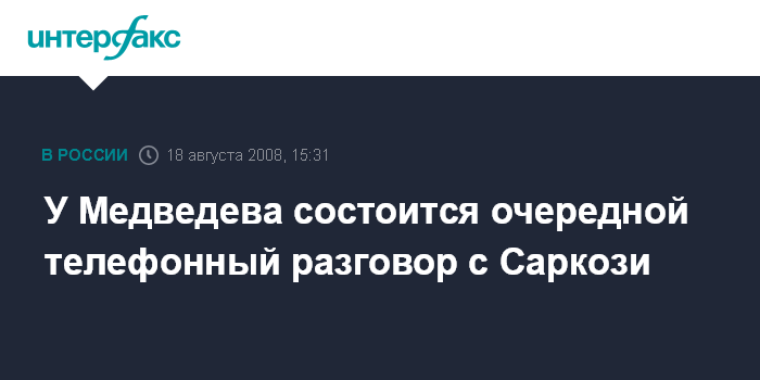 Москва. 18 августа. INTERFAX.RU - Президент РФ Дмитрий Медведев сегодня проведет очередные телефонные переговоры со своим французским коллегой Николя Саркози по поводу ситуации в Южной Осетии, заявил замглавы Генштаба РФ Анатолий Ноговицын.